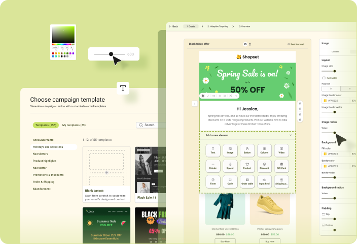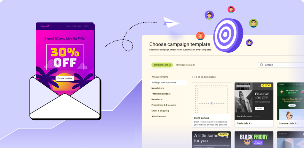 No more writer’s block or design drudgery. Drag in pro templates, or build from scratch—your emails, your rules, and ready in minutes.