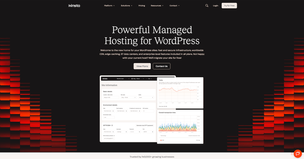 Kinsta offers powerful WordPress managed hosting for all types of WordPress sites. Whether you want to create a blog, eLearning course site, eCommerce store, or a large-scale website for an enterprise, Kinsta has a plan and capacity to cover your needs. You can upgrade with the growth of your business and the volume of visitors that land on your websites.